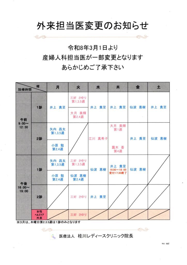 産婦人科担当医が一部変更となります。