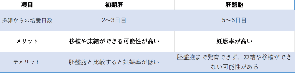 初期胚と胚盤胞のメリットとデメリットをまとめてみました。